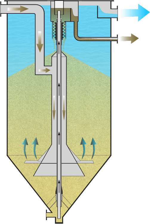 The Blue PRO filter is built on Nexom’s own Centra-flo® continuous-backwash sand filter process (pictured at right). In this process: