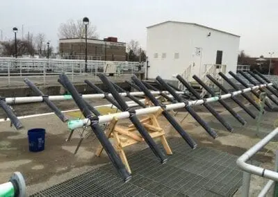 Once the financing challenges for the project were sorted out, EDI faced the challenge to execute the project according to the city’s preference. The city agreed for only three days downtime for their tanks, so to save time on installation, EDI came up with the unique solution to put a fixed grid diffuser system with EDI’s high oxygen transfer efficiency FlexAir MiniPanel fine bubble diffusers; installed over the top of the existing installation of the ceramic disc diffusers.