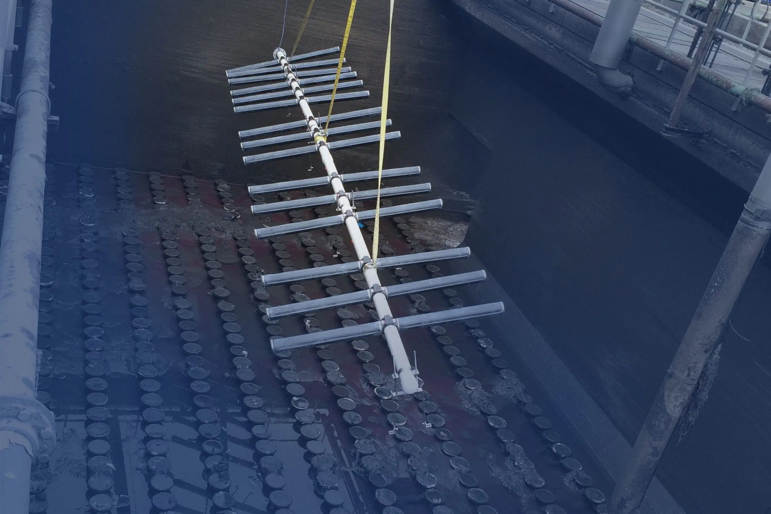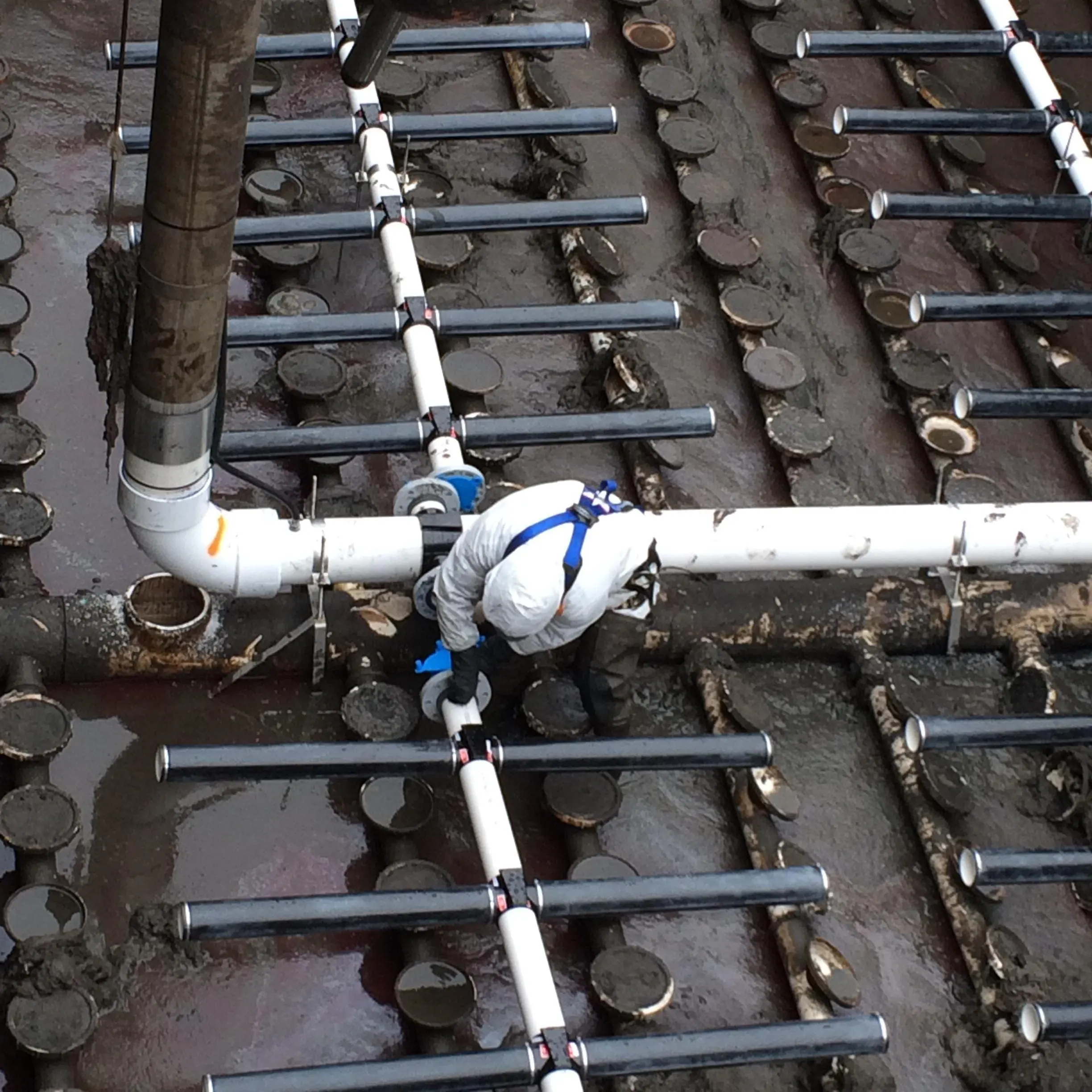 EDI pre-assembled the laterals, de-watered the tank, installed the laterals on top of the ceramic diffusers, and watered the tanks back – all in the extremely cold weather of March 2017, when any remaining water in the tank used to turn into ice overnight. Thanks to its elite squad of wastewater treatment installation specialists, SiteWorks pulled-off this task that everyone thought would be impossible.