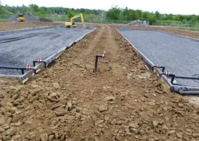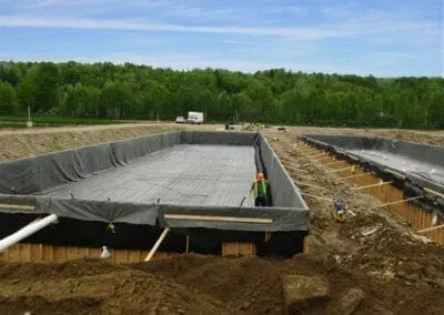 In 2010, the existing wastewater treatment plant in Doaktown consisted of a single facultative lagoon. The proposed solution would utilize this existing lagoon as part of the overall upgrade, allowing the WWTF to realize cost savings in the construction, and long-term operation and maintenance of the system. The updated facility would consist of a new optAER® aerated lagoon for primary treatment, followed by the existing lagoon, which was divided into two treatment cells for secondary treatment, using a geomembrane floating baffle curtain to divert flow and effectively maximize the hydraulic retention time by preventing short-circuiting. Two SAGR® beds were then constructed to provide tertiary treatment before discharging into the Miramichi River.