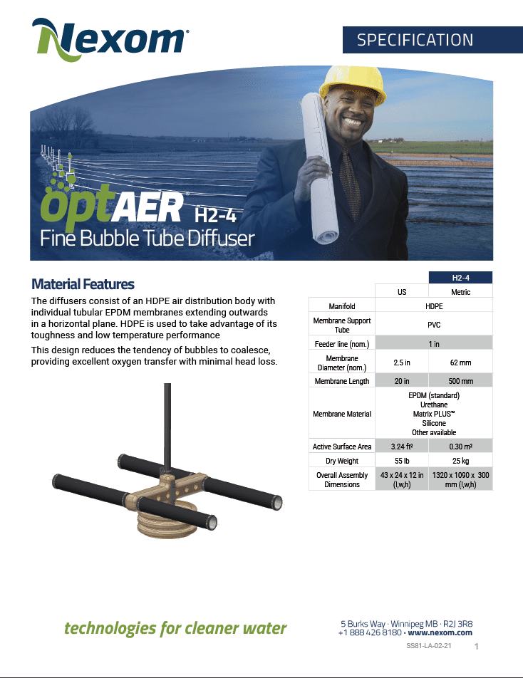 OptAer H2-4 Fine Bubble Tube Diffuser