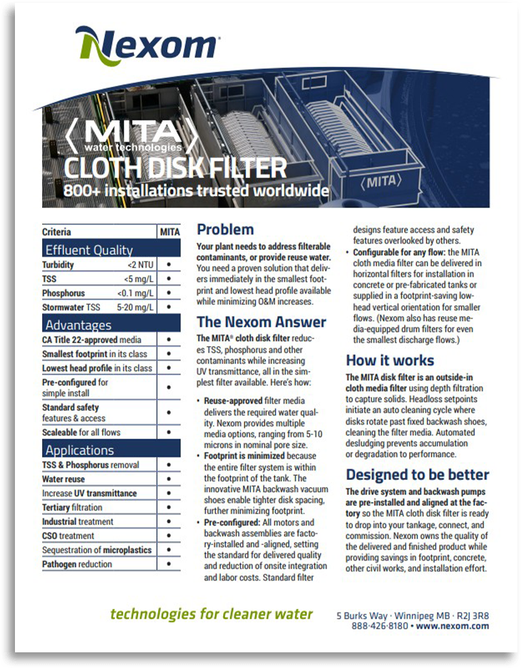 MITA Cloth Disk Filter