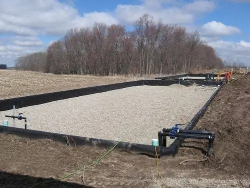 Mentone’s SAGR system consists of two gravel beds each capable of handling 100% flow in the summer in the rare case that maintenance would have to be performed within a single bed. No changes were made to the facultative lagoons infrastructure. In Mentone, no aeration was required in the lagoons to meet the recommended lagoon effluent BOD5 feeding the SAGR process. The upgrade was completed without acquiring additional land, or taking either of the existing lagoon cells off-line.