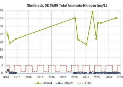 The Town of Shellbrook is a rural community in Northern Saskatchewan with nearly 1,300 residents. Like many other small communities faced with the challenge of an aging lagoon-based wastewater treatment facility and increasingly stringent regulations, the Town of Shellbrook was evaluating options to upgrade its wastewater treatment facility. Shellbrook’s objective was to treat its wastewater to the standards set by the CCME (Canadian Council of Ministers of the Environment), which Saskatchewan Environment was in the process of adopting. The desired solution would bring cBOD₅ and TSS levels under 15 mg/L as well as provide effective ammonia and phosphorous removal on a year-round basis.