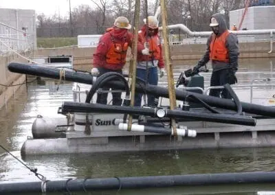 For lagoons and floating lateral systems, we use SiteWorks owned custom boats for work that must be completed without draining the basin. Our crews often operate skid steers, reach trucks, and RTOs to complete projects.